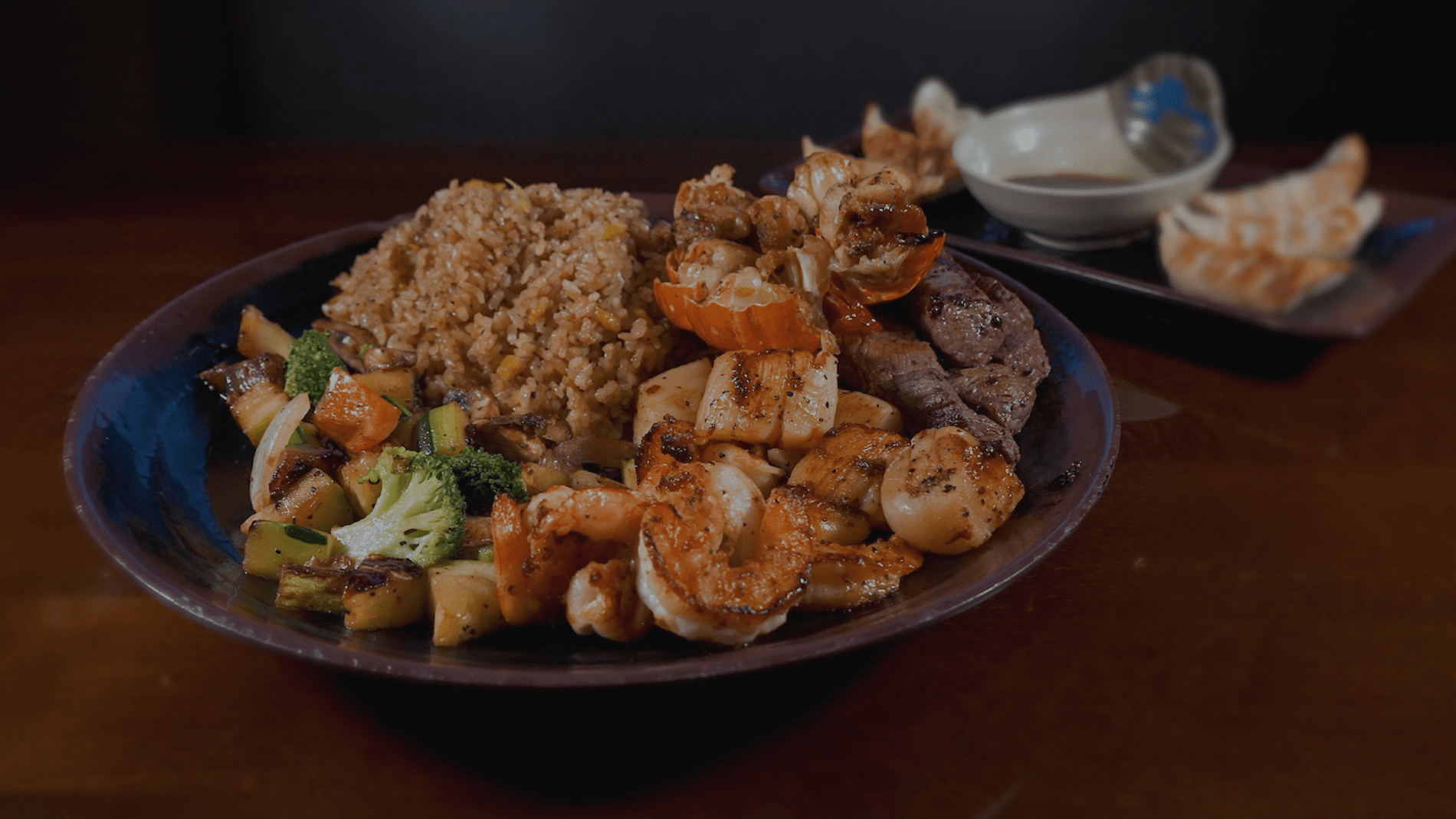 Japanese-style teppanyaki techniques create consistent flavor across all menu items.